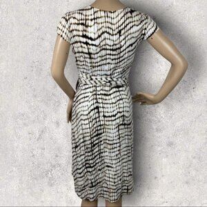 Ann Taylor Brown and White Animal Print Wrap Dress in Women's Size XS. Midi length. Short cap sleeves. V-neckline. Wrap around waist belt.