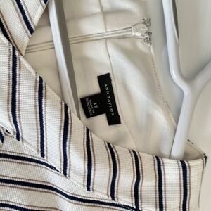 Ann Taylor Belted Sheath Dress White & Navy Size 12 US