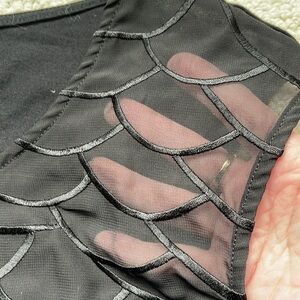 This soft lightweight top features a sheer embroidered panel on the front. It is in excellent preowned condition with no holes or stains. Tagged a size XS, laying flat it measures: