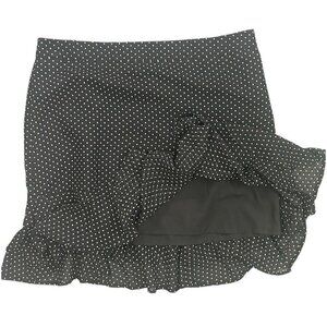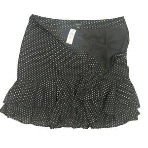 Ann Taylor Black Skirt White Polka Dot Knee Length Skirt Lined Ruffles - Size 14