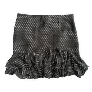 Ann Taylor Black Skirt White Polka Dot Knee Length Skirt Lined Ruffles - Size 14