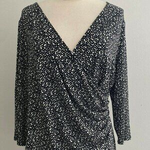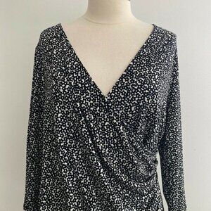 Ann Taylor Black and white small flower patterned Surplice top (crossover). It drapes beautifully to the side