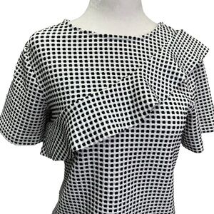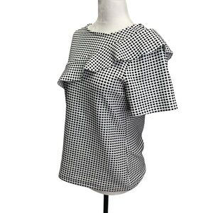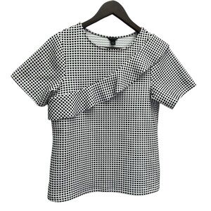 Ann Taylor Black/White Short Sleeve Blouse Top With Ruffle Size S