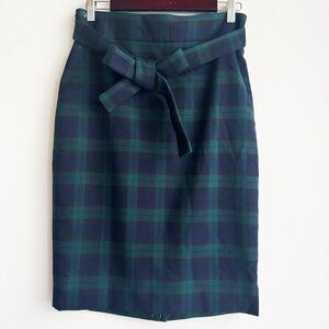 Ann Taylor Blackwatch Plaid Green Blue Tie Waist Pencil Skirt 4
