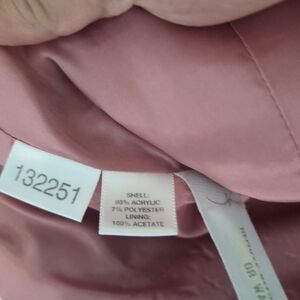 This sophisticated pink tweed blazer from Ann Taylor features a tailored silhouette and a classic notched lapel collar. Its woven texture and cropped length make it a timeless choice for business or formal occasions.