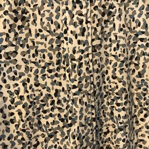 A great summertime blouse from Ann Taylor. It has a pleated front with a lightweight feel with a flutter cap sleeve. The print consists of imperfect grey and blue specks.