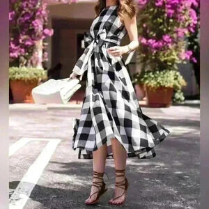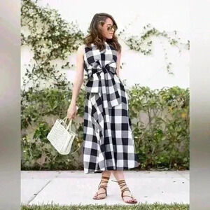 Ann Taylor Cotton Black White Gingham Midi Dress Plaid Sleeveless size MPetite