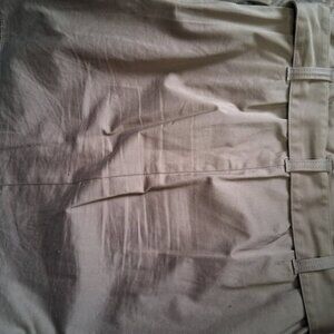 2 hip pockets and belt. 17 inch waist lying flat. 22 inches long. Generous 10.