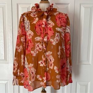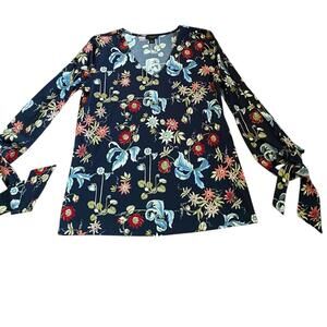 Ann Taylor| Cream & Black Sleeveless V-Neck Buttoned Blouse w/Clover Print Sz L