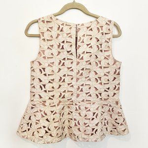 Beige Crochet Style Peplum Top with Pink Lining Peeking Through
