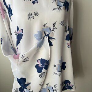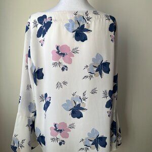 🌼Ann Taylor Floral Blouse Beautiful Navy Lilac & Light Blue Print Boatne…