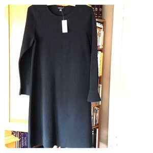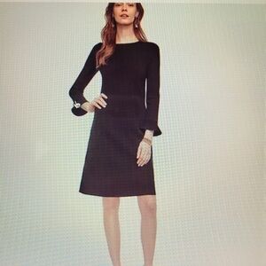 Ann Taylor dress in gorgeous rich knit that is sturdy enough to hide flaws, yet not bulky. Finished with feminine fluted sleeves, this refined dress ends on the sleekest note. Jewel neck. Long sleeves. Designed to hit at or just above the knee. Unlined. Nice stretch for fit.