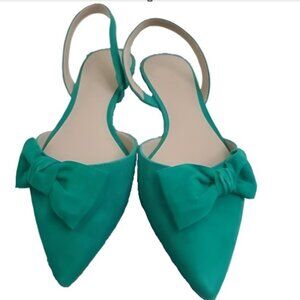 Ann Taylor Green Jacy Bow Suede Slingback Flats Size US 8.5 ! NEW ! Never worn