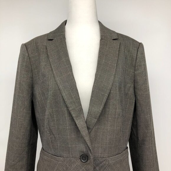 Ann Taylor Grey Lightly Checked Blazer & Skirt Suit Set size 12P and 10