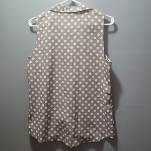 Ann Taylor Grey and White Polka Dot Sleeveless Top M