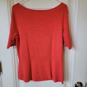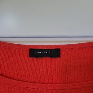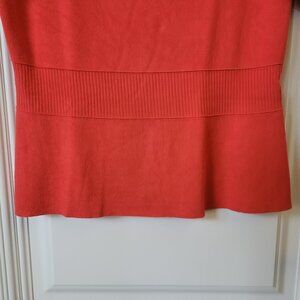 Ann Taylor, EUC, Size L, according to P to P measurements of 18" + stretch, Coral colour, with ribbing detail at sleeve and waist, very slight peplum detail below waist. No visible marks, stains or tears. P to P 18" + stretch, L 23"
