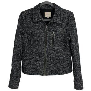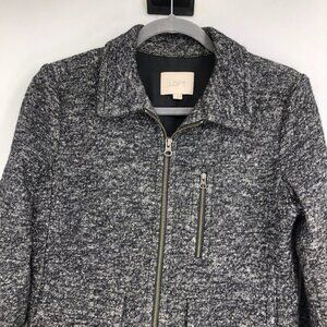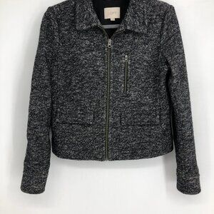 Ann Taylor LOFT Charcoal Marled Full Zip Long Sleeve Wool Blend Cropped Jacket S