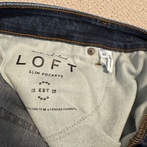 Great pair of LOFT Plus jeans in a mid wash. Ankle is slim but not SUPER skinny.