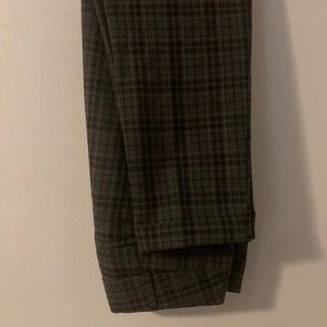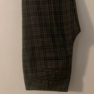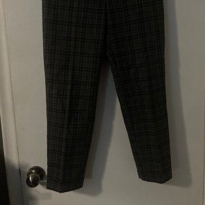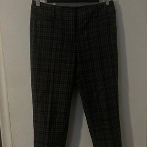 Charcoal and brown plaid Ann Taylor Loft straight leg trousers. Size 2. Poly / rayon / spandex. Machine washable. In very good pre-worn condition.Measurements: waist 16", rise 8.5", inseam 26"