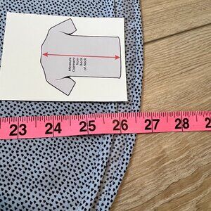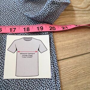 Elevate your workwear or casual wardrobe with this classic Ann Taylor short-sleeve blouse! Size Medium, this blouse features a timeless black background with a delicate light blue dotted pattern. Classic crew neck design. Short sleeves for comfortable wear.