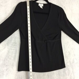 Ann Taylor Loft Cross Front Top Sz Medium Black Ribbed V Neck Tunic
