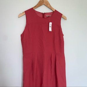 Ann Taylor Loft Dress Size 6 US Coral Red High Scoop Neckline Pleating NWT