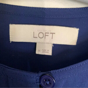 Ann Taylor Loft Navy Blue Long Button Front Sleeve Blouse M