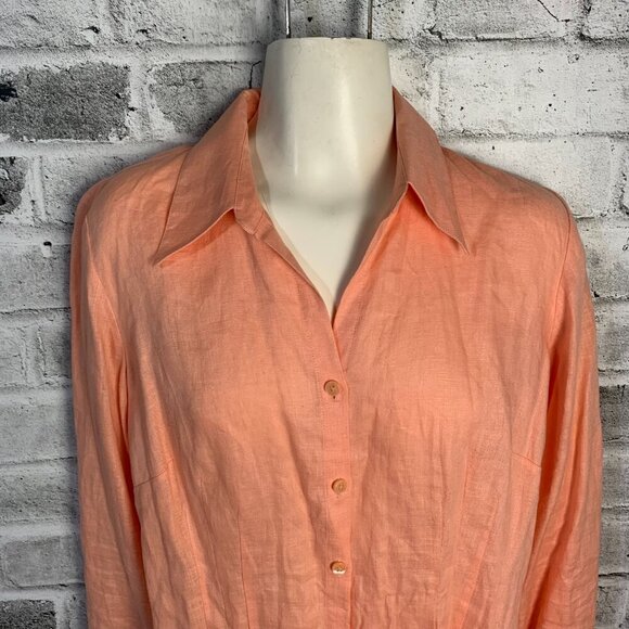 Ann Taylor Loft Petites 100% Linen Peach Long Sleeve Button Down Shirt