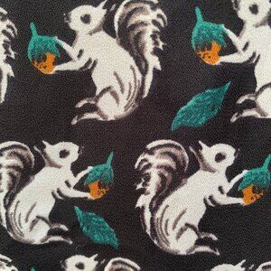 A button front placket blouse with cargo sleeves and tabs that let you roll them up and secure them, but it's the squirrel print that is super cute.