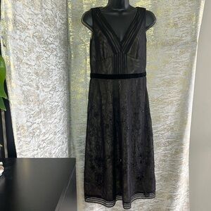 Ann Taylor Loft Women’s Black Sheer Flower Embroidered Cocktail Dress Size 4