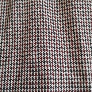 Color is black with cream, black, and burgundy houndstooth pattern.