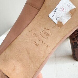 Ann Taylor Nude Beuge Snakeskin Block Heels 9M.