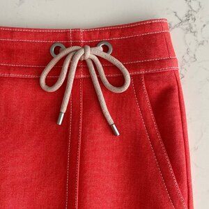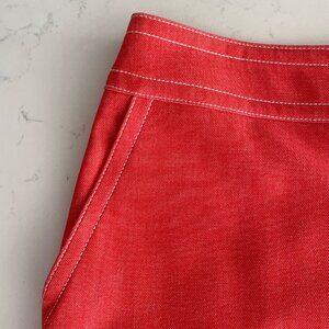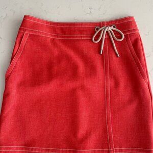 Ann Taylor Petite Faux Wrap Polyester Blend Lined Skirt w Pick Stitching & Bow Detail in Heather Orange + White