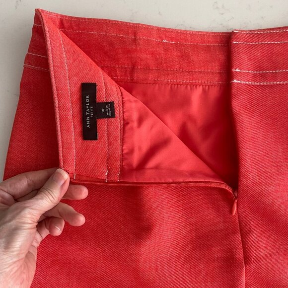 Ann Taylor Petite Faux Wrap Skirt Pick Stitching & Bow Detail Heather Orange 10P