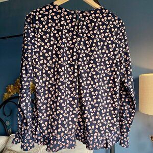 Ann Taylor Petite Navy Blue and Peach Petals Ruffle Sleeve Blouse