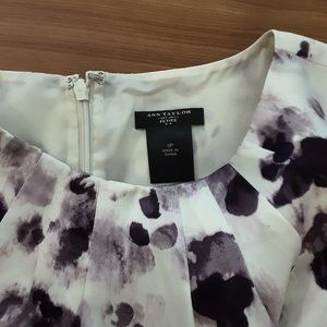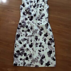 Ann Taylor Petite White Sheath Dress with Purple Patterns