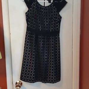 Sweet and feminine Ann Tayor petite dress white lined with black cut out size xs zip back excellent condition