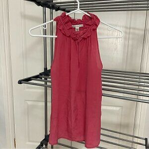 Ann Taylor Ruffle Ponte Sheer Halter Top in pink. In very good preowned condition.