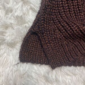Ann Taylor SHIMMER Glitter Chunky Knit Crew Neck Sweater SPICED COCOA Size XS Balloon Sleeve