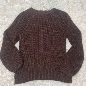 Ann Taylor SHIMMER Chunky Knit Crew Neck Sweater SPICED COCOA XS Balloon Sleeves