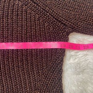 Ann Taylor SHIMMER Glitter Chunky Knit Crew Neck Sweater SPICED COCOA Size XS Balloon Sleeve