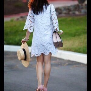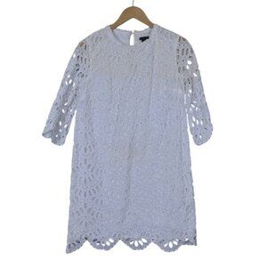 Ann Taylor Scallop Eyelet Shift Dress White Size 6