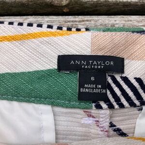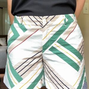 Ann Taylor Shorts with Geometric Pattern - beautiful material and color. Shorts are a size 6 and are very comfortable. These shorts can be worn with sneakers or sandals for casual wear or heals and a blazer for a more sophisticated look. Great condition. measurements - waist flat - 17". length - 14"