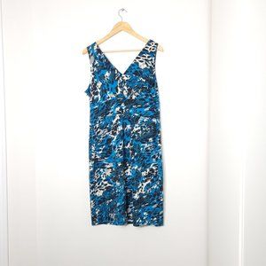 Ann Taylor Sleeveless Midi Dress V Neckline Stretch Leopard Print Blue Womens L