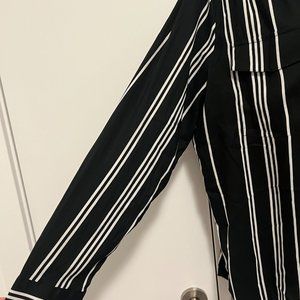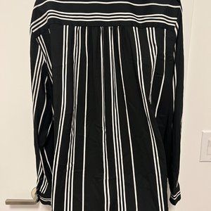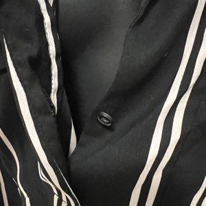 Silky, sexy black and white striped low cut pullover shirt. Suitable for the office but also great at night as it unbuttons quite low if you want it to ;). In EUC from a smoke/pet free home. Size XL from Ann Taylor.