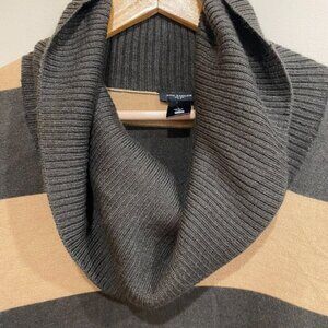 Ann Taylor Sweater Dress Large Brown Striped Cowl Merina Wool Black knit Collar