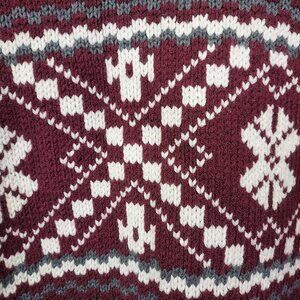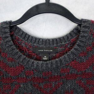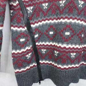 Ann Taylor Sweater Medium Gray Chianti White Snowflake Side Zip Wool Fair Isles