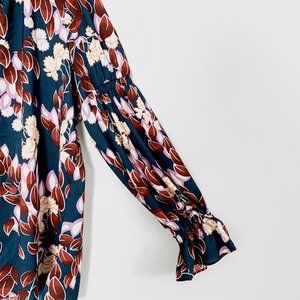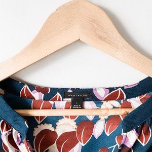 🌱 Ann Taylor Teal + Floral Print Top | Large Flowy Blouse spring
