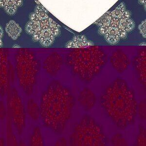Ann Taylor Womens Medium Blouse Navy Blue Batik Print Long Sleeve V Neck Office