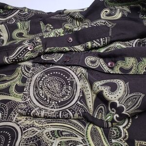 Ann Taylor Women's Paisley Silk Blouse Brown Green Button Front Ruffle Size 16